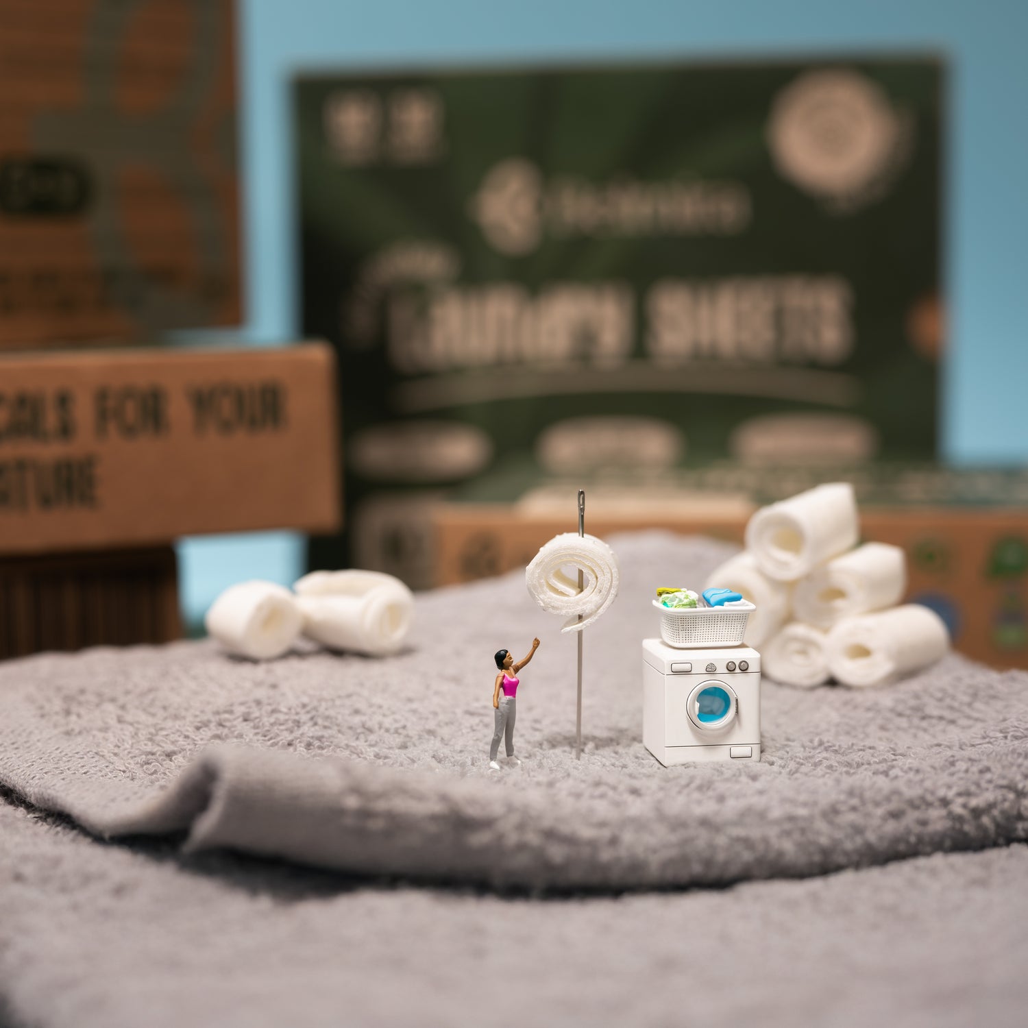 Μας πήρε πάνω από έναν χρόνο και αλλάξαμε 7 διαφορετικές φόρμουλες για να κάνουμε τα σεντόνια πλυντηρίου φιλικά προς το περιβάλλον, ακίνδυνα για το δέρμα ακόμη και των παιδιών, και ταυτόχρονα να πλένουν κάθε είδους λεκέδες.